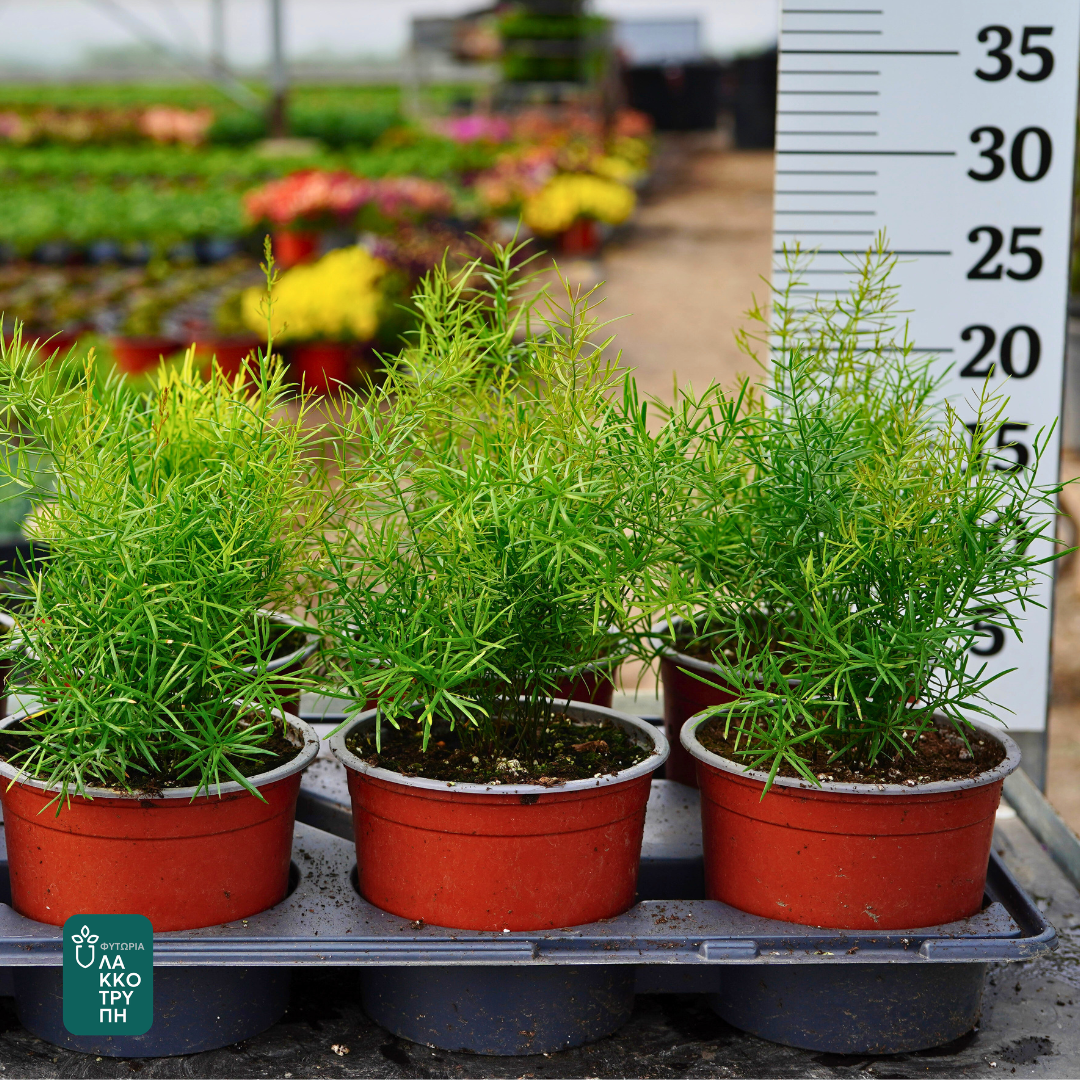 Το Asparagus sprengeri (Asparagus densiflorus ‘Sprengeri’) είναι ένα κομψό, γρήγορης ανάπτυξης φυτό με μακριούς, καμπυλωτούς βλαστούς και λεπτό, φωτεινό πράσινο φύλλωμα. Η απαλή, “φτερωτή” υφή του προσθέτει κίνηση και φρεσκάδα σε κάθε χώρο.